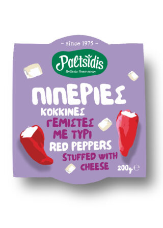 Poivrons rouges doux Paltsidis farcis avec un mélange de fromages. Une combinaison imbattable, délicieuse et saine avec une touche méditerranéenne prêt à être servi en apéritif. En 200gr